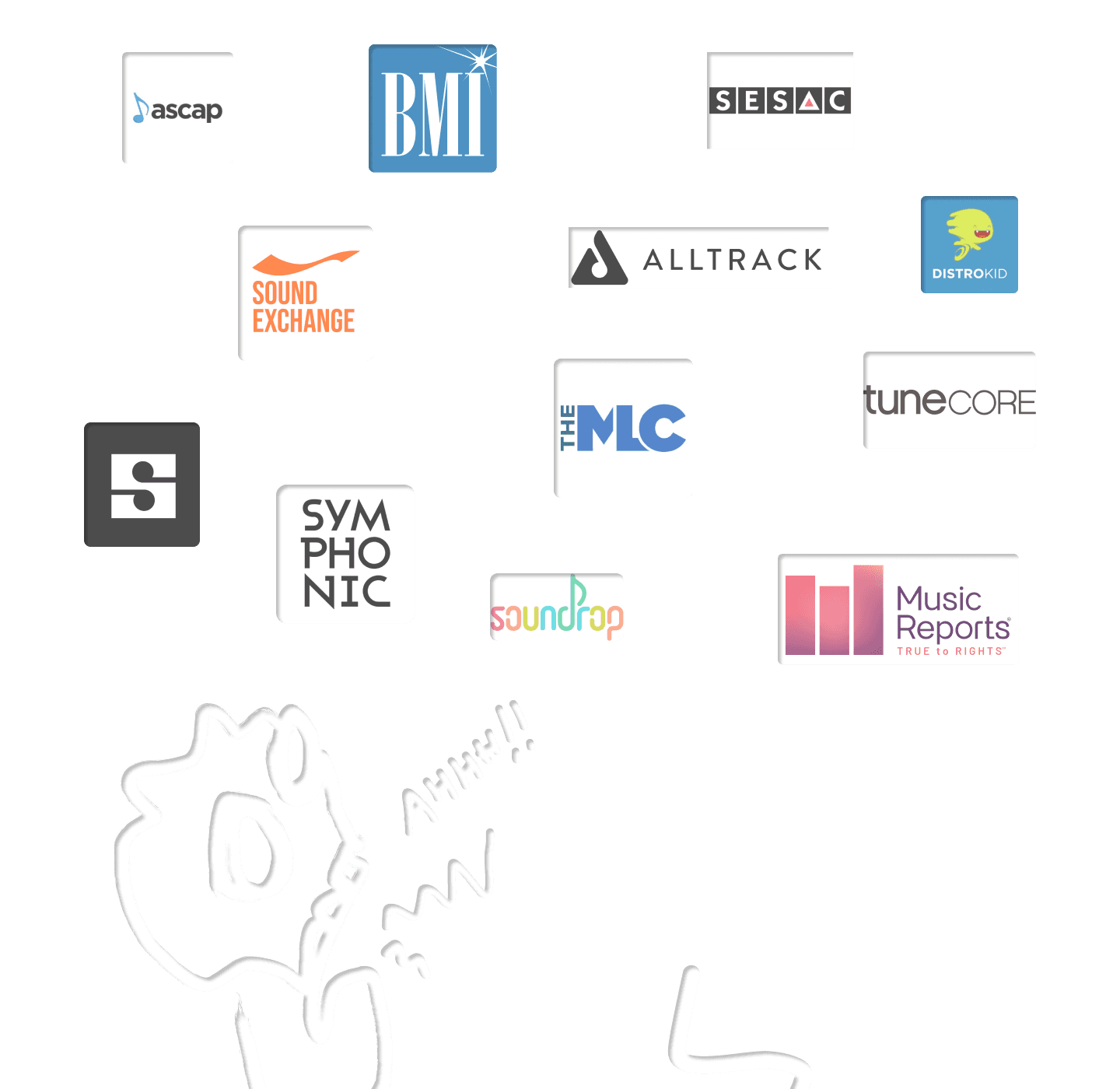 Connect all your royalty accounts, register new songs with one click, fix missing data for your back catalog, and never miss a payment again, even from your live shows